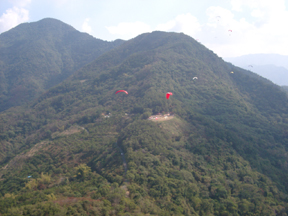 テイクオフの様子。左尾根にもたくさんいますねえ。